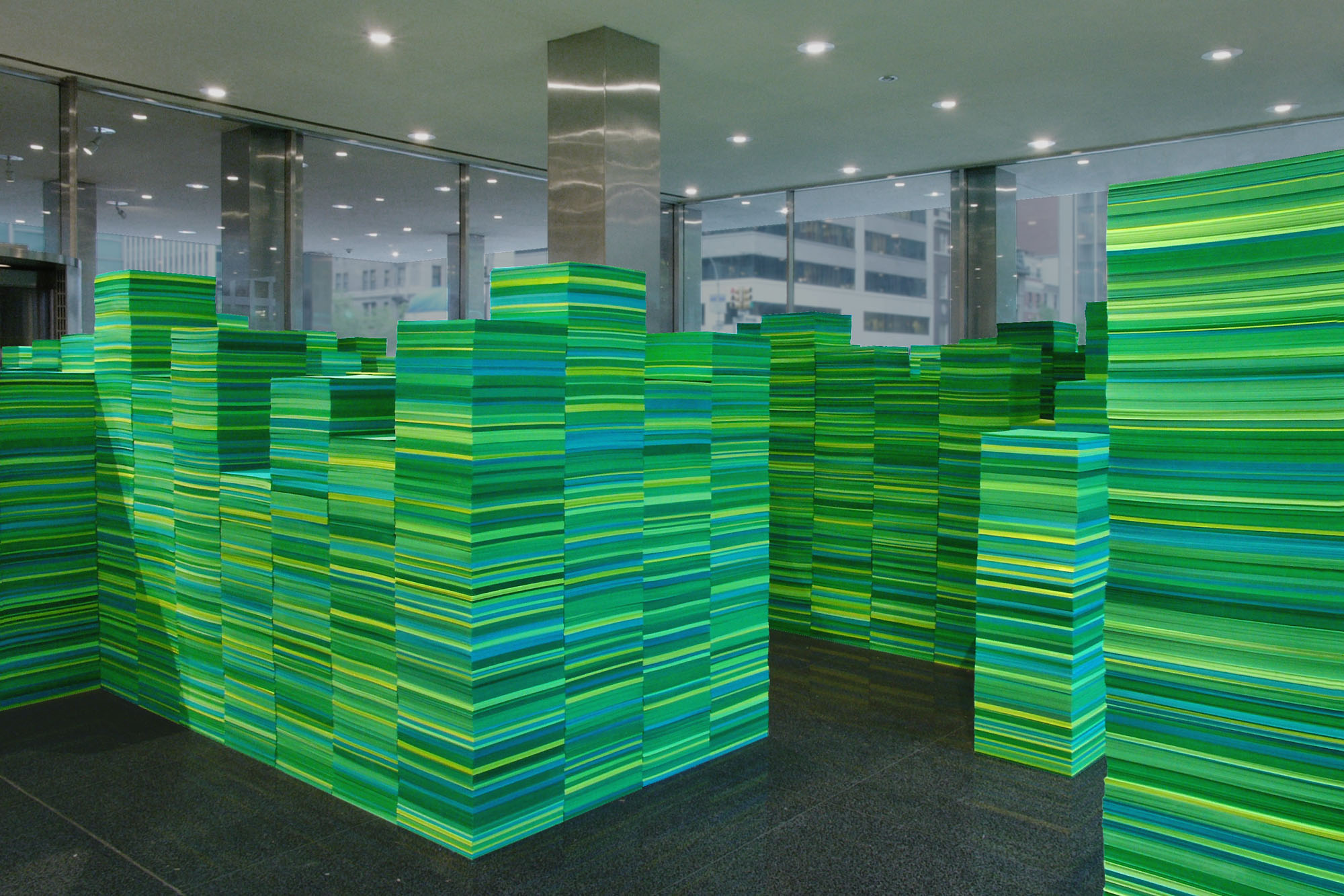 LEVER LABYRINTH diecut paper w/ steel armatures, Lever House, NY NY, 2005